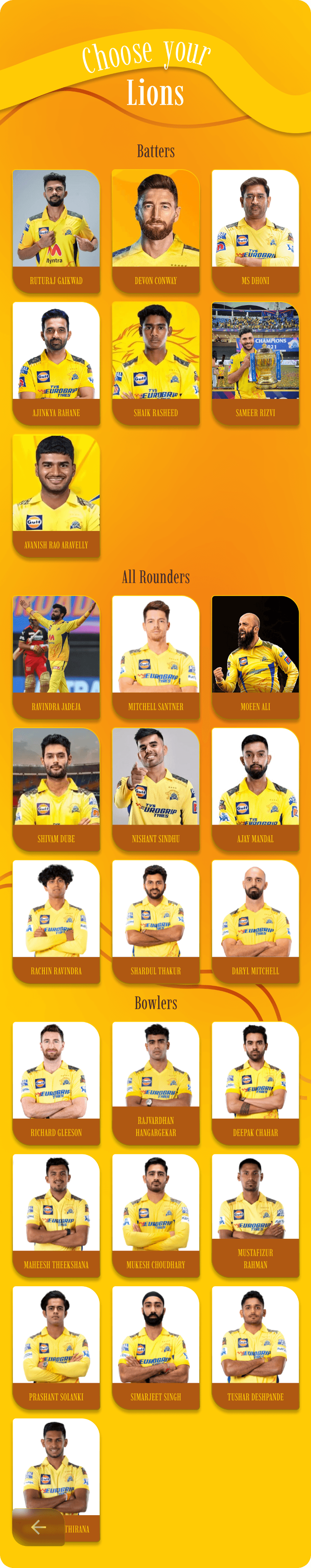 Based on the team you select, you'll be provided with that team’s color scheme for choosing your players.