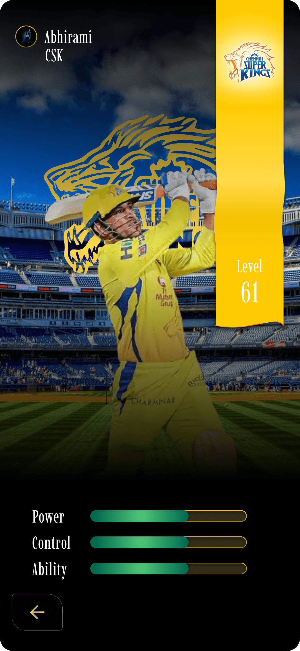 The background features a blurred image of a stadium, creating an immersive atmosphere that keeps the focus on the player.