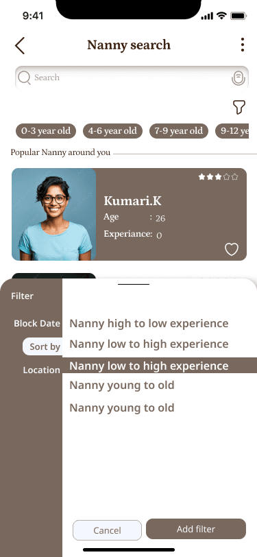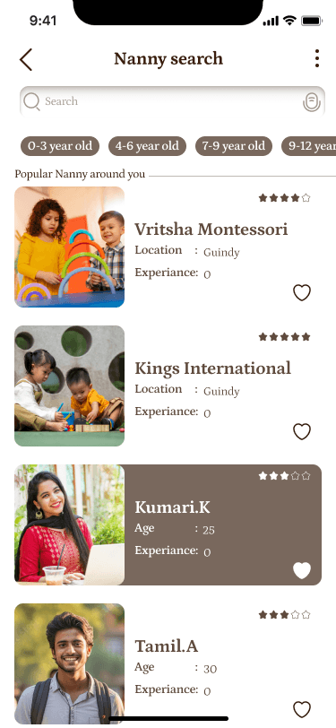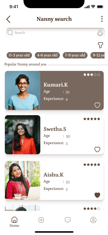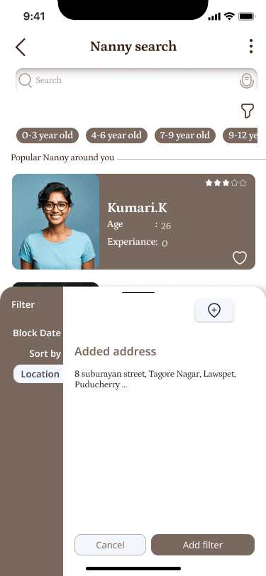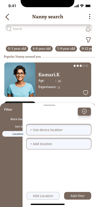 Easily filter nannies based on your location, ensuring convenience and proximity to your home.