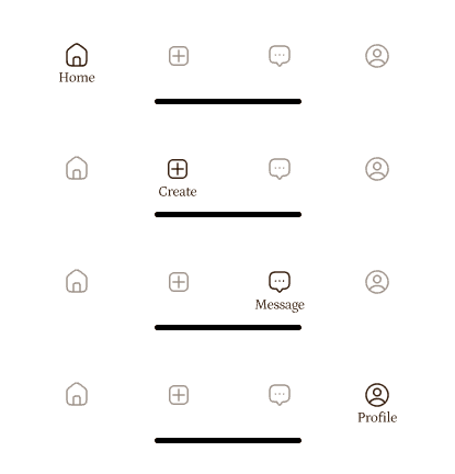 Consists of Home, Create, Message and Profile